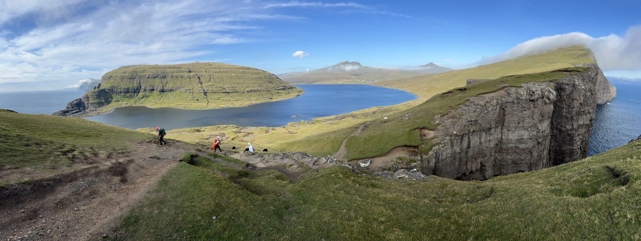 Następnie grupa przejedzie nad jezioro Sørvágsvatn, gdzie odbędzie się dwugodzinny, łatwy trekking wzdłuż jego brzegów do wodospadu Bøsdalafossur oraz na słynną skarpę niewolników Trælanípę. Trasa obejmie także przejazd przez miasteczko Sandavágur, gdzie chętni będą mogli udać się na krótki, bardzo łatwy spacer na Trøllkonufingur – niezwykłą iglicę abrazyjną, będącą według legendy palcem wiedźmy. Dzień zakończy się powrotem na miejsce zakwaterowania; kolacja we własnym zakresie.