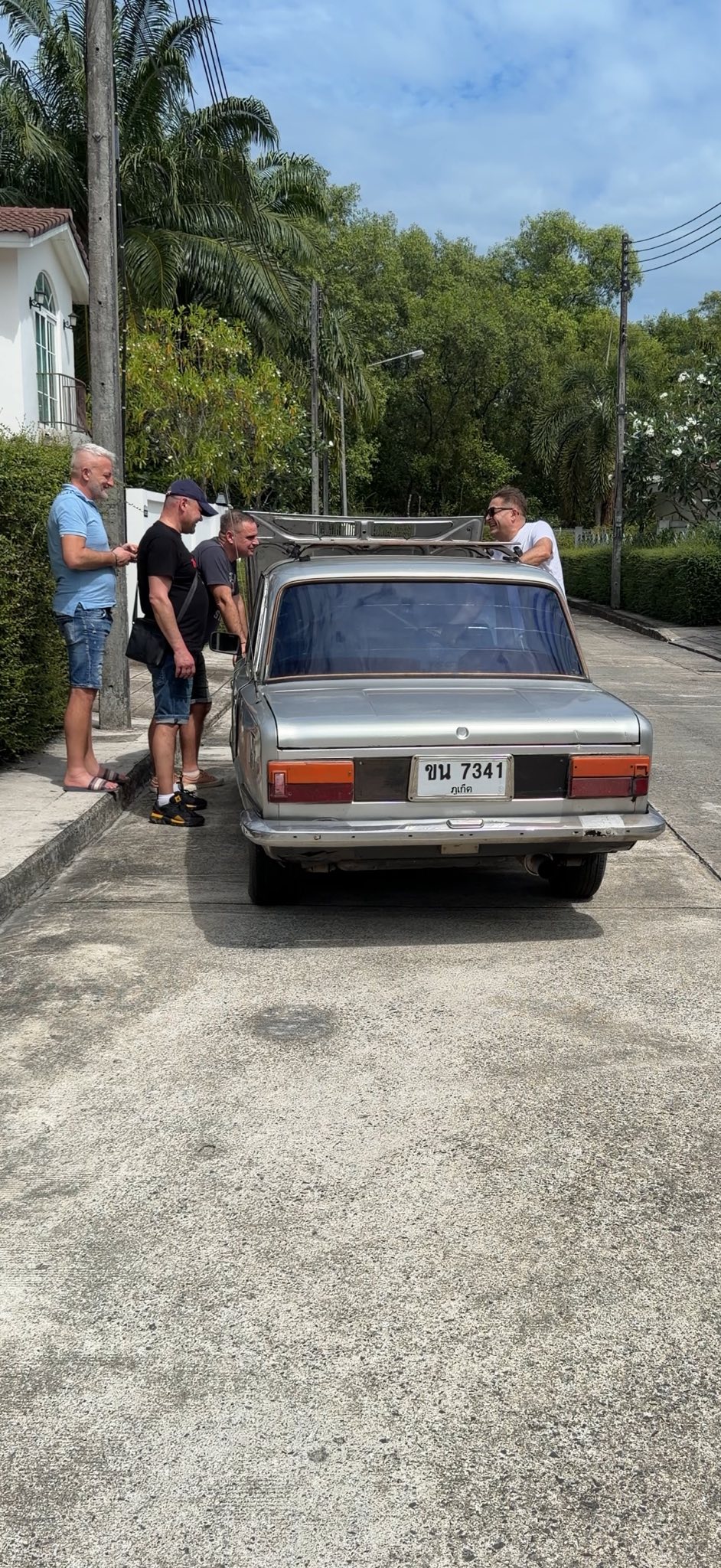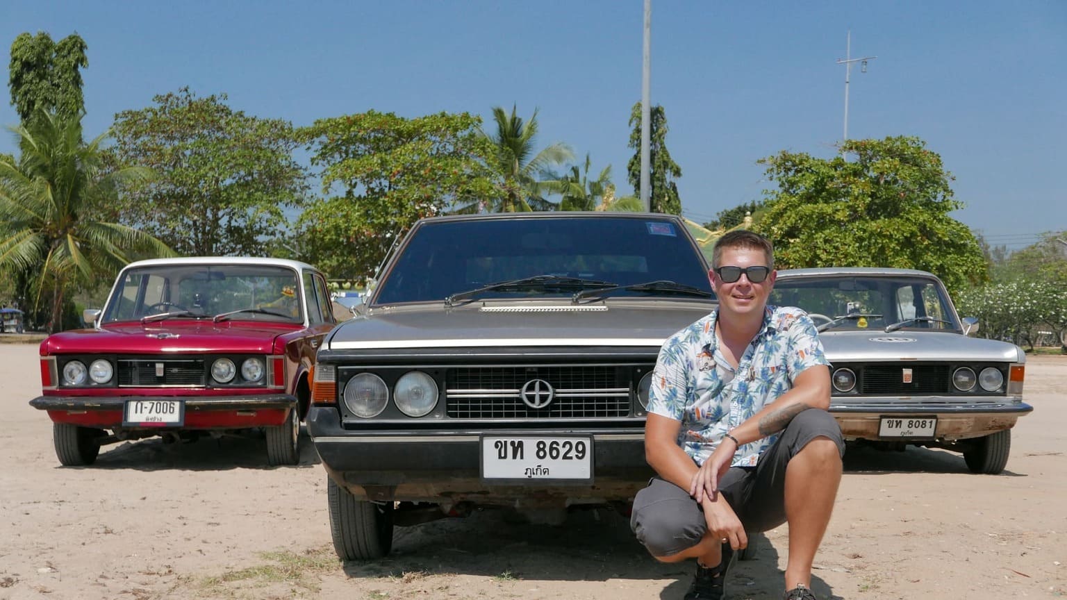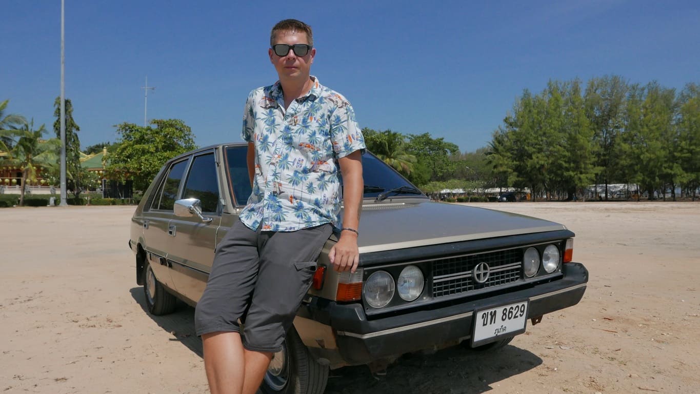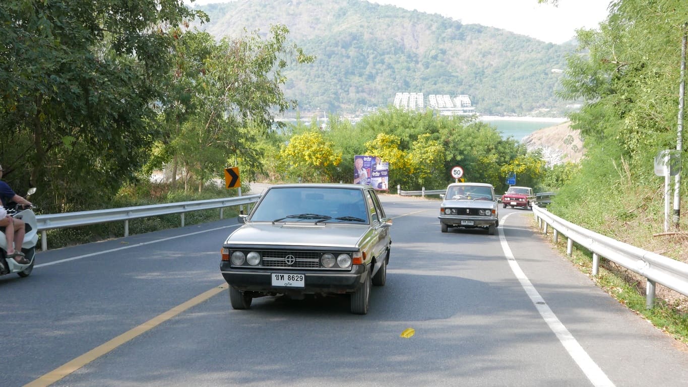 Klasyczny polski Fiat 125p z 1975 roku, który w Tajlandii otrzymał japoński silnik Nissan A15 1.5 i manualną skrzynię – symbol trwałości i azjatyckich modyfikacji, gotowy na powrót do domu.