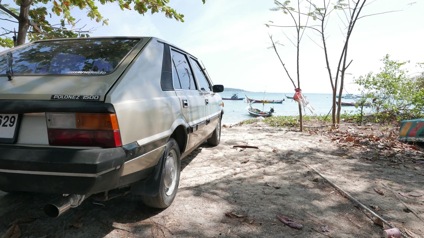 Ikoniczny Polonez z 1980 roku z 2.0-litrowym silnikiem Toyota 3S-FE i automatyczną skrzynią – najmocniejszy w ekipie, z dumą reprezentujący polską motoryzację lat 80. na tajskich drogach i w nadchodzącej epopei.